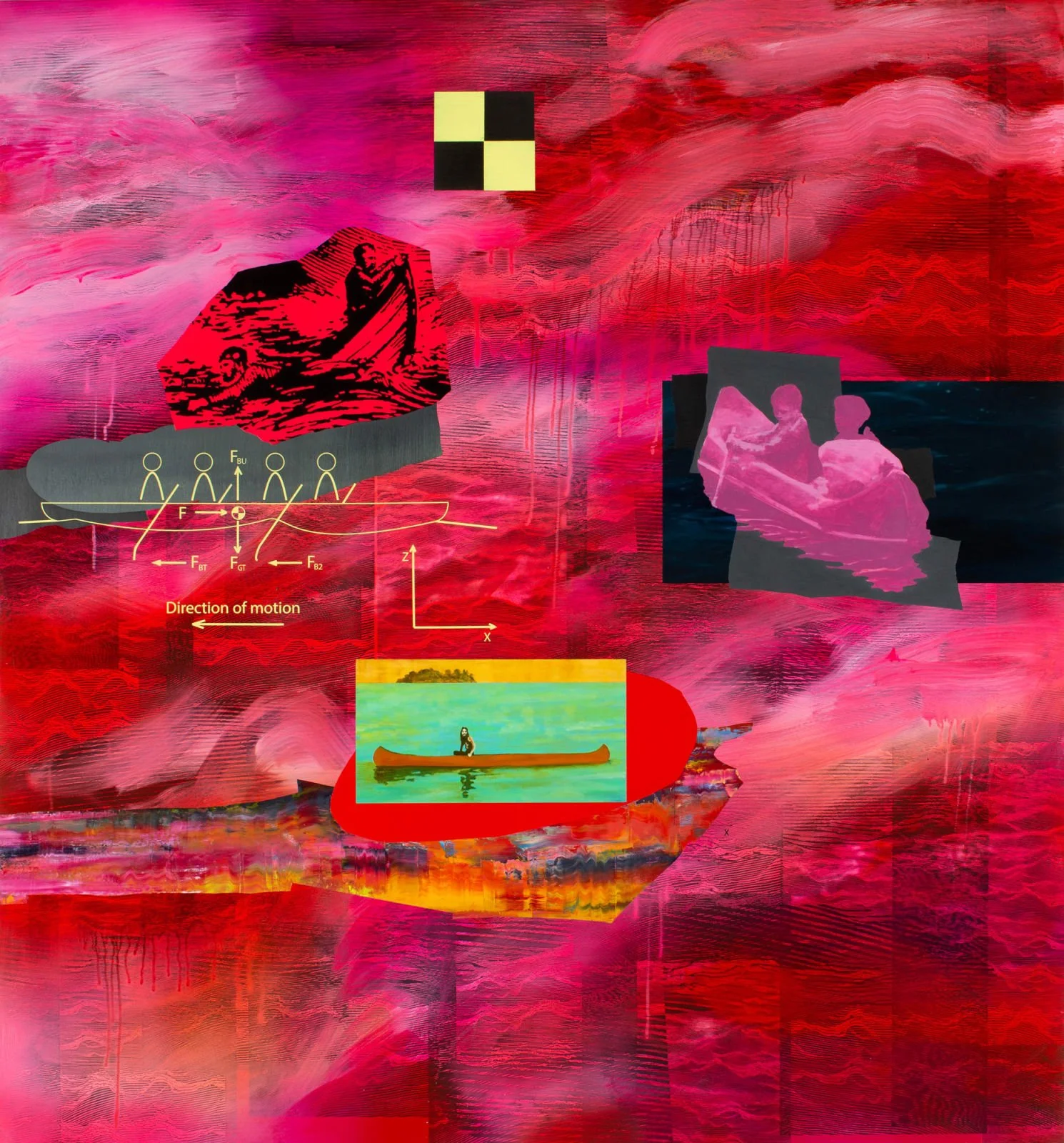 Learning to row, 2023, acrylic, oil, and lacquer on aluminium panel, 2023